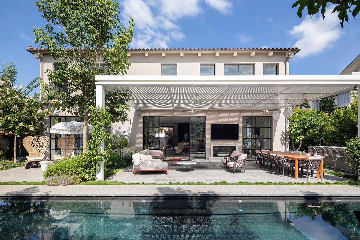 וילת בוטיק זו ברעננה עוצבה עם מראה חיצוני קלאסי, עטוף בפרטים וגן ים תיכוני יפהפה. לאחר הכניסה לבית דרך דלתות עץ גדולות, עיצוב הפנים הוא שילוב ייחודי של צבעים, חומרים ומרקמים היוצרים אווירה של יוקרה עם עיצוב אקלקטי מודרני. תחושה ביתית בסגנון בוטיק, שיש לה "הפתעות" בכל מקום אליו תפנו. החל מאי נירוסטה חלקלק מודרני במטבח, לוח שיש איטלקי באורך 5 מטרים עבור שולחן האוכל, ועד ספת קטיפה עשירה בצבע בורדו עם בר מודרני מזכוכית הנשקף אל הבריכה. הפריסה של קומת הקרקע היא חלל פתוח עם נוף ישיר מדלתות הכניסה לבריכה בחצר האחורית, עם עיצוב תאורה הלוכד את המהות של כל אזור בתוכנית הרצפה. גרם המדרגות בגובה כפול עם מעקה ברונזה בהתאמה אישית וקיר צבוע בטורקיז מחבר באלגנטיות רבה את כל מפלסי הוילה. לכל חדר שינה יש את העיצוב הייחודי שלו עם ריהוט בהזמנה אישית, חדר רחצה צמוד וראייה שלמה של כל הפרטים והגימורים. במרתף יש חדר קולנוע הצמוד לחדר האימון גם בצבעים וגם בדרמה. סוויטות אירוח נוספות כלולות באזור זה. המראה החיצוני הקלאסי הנקי עם הארכיטקטורה הפנימית החיה הופך את הוילה לייחודית ומלאת אופי נהדר.